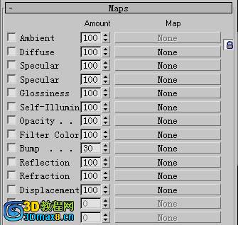 3D Maps三维贴图:是程序生成的三维模板,如Wood木头,在赋予对象的内部同样有纹理。被赋予这种材质的物体切面纹理与外部纹理是相匹配的。它们都是由同一程序生成。三维贴图不需要贴图坐标。