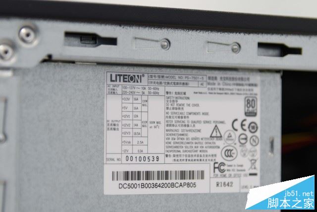 宏碁威武781的内部布局较为规整,大多数的线材都进行了捆绑和固定,该机支持4根内存扩展,同时还能看到采用半高设计的GTX 1060 3GB显卡,该机支持全高的独立显卡。内存方面,该机的两条8GB DDR4 2400内存来自镁光。此外,我们可以看到该机电源来自台湾光宝(隶属Liteion),采用三路12V联合输出432W的方案(整个电源全功率最大500W),功率有一定保证。