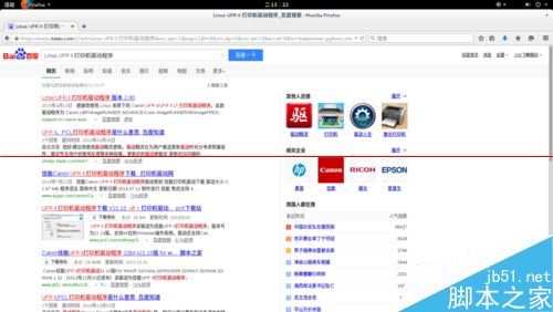 3、打开浏览器,百度搜索“Linux UFR II 打印机驱动程序”,选择第一个搜索项进入。