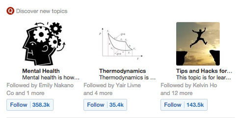 上述的个性化排名已经是推荐的一种形式了。类似的方法用在不同的案例中。例如,广受欢迎的Quora 邮件精选包括了一系列为你挑选并推荐的故事。这是一个不同的机器学习排名模型,根据不同的目标函数进行优化。除了排名算法,我们在产品的各个不同部分有其它的个性化推荐算法。例如,在好几处地方,你都可以看到人物或主题的推荐(见下图)。