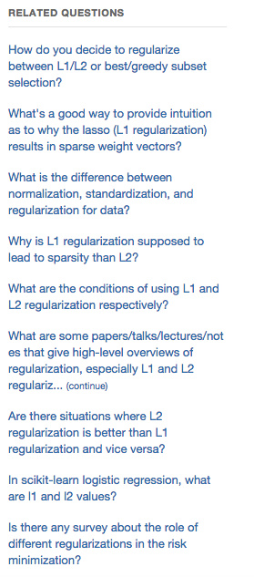 相关问题由另一个机器学习模型来确定的,它考虑多种不同特征,例如,文字相似性、共享数据(co-visit data),或是如主题等相同的特征。与流行度、或是问题质量相关的特征也要考虑。有必要指出,一个好的“相似问题”推荐,不仅是一个条目与源问题有多相似,还包括目标问题的“趣味性”。实际上,对于任何一个“相关条目”机器学习模型,最麻烦的问题是在相似性和其它关联性因素间进行权衡。