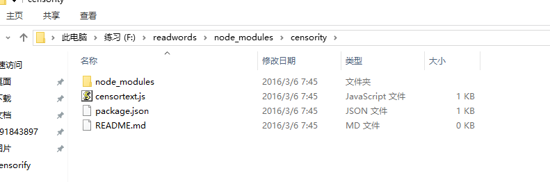 3.安装完成后会在readwords文件夹下生成包含censority子文件夹的node_modules文件夹