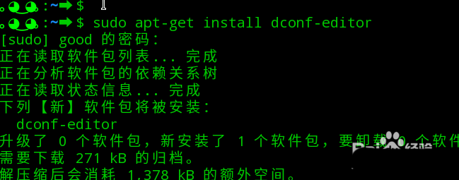 2、在终端中查找一下软件源中是否有dconf。如下图所示,软件源有doconf配置编辑器。