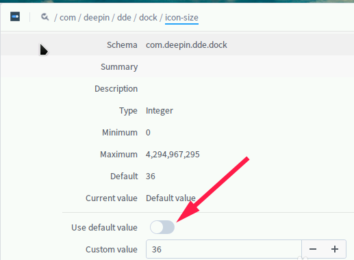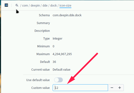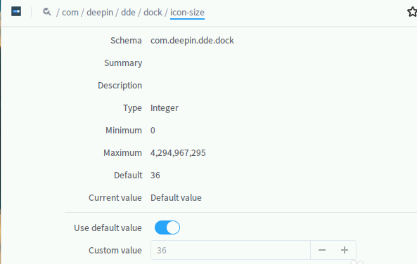 2、依次找到/com/deepin/dde/dock/icon-size,如下图所示