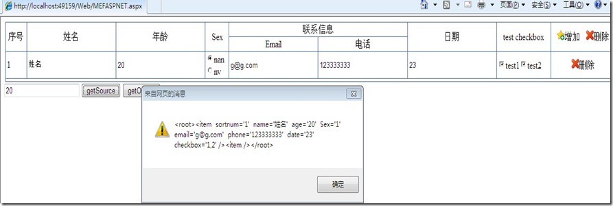 8:getSource(saveHiddentField):获取xml组织的属性集,如果传入了saveHiddentField选择器,这会自动赋值在saveHiddentField上。