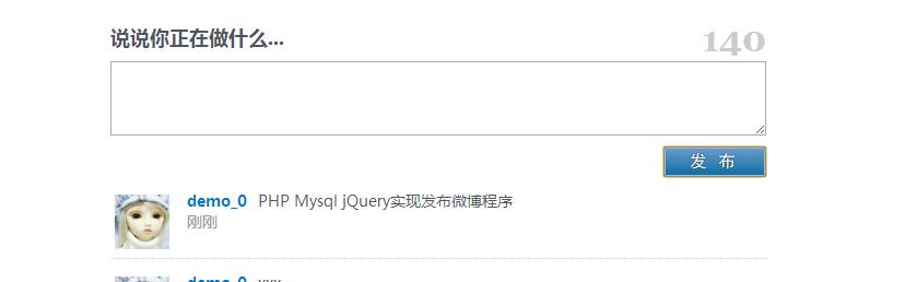 以上就是如意苗条最近收集整理的关于PHP+Mysql+jQuery实现发布微博程序 php篇的全部内容,更多相关PHP+Mysql+jQuery实现发布微博程序内容请搜索靠谱客的其他文章。