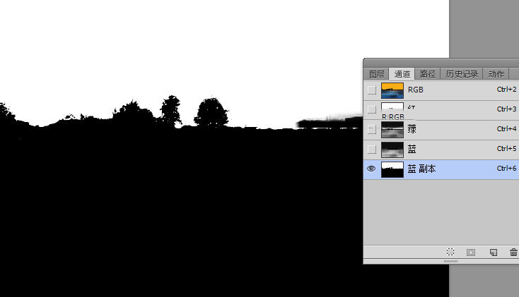 15、现在给天空添加霞光。新建一个组命名为“天空”,在组里新建一个图层,按Ctrl + Alt + Shift + E盖印图层。用通道把天空部分抠出。
