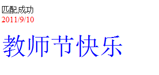 echo "匹配成功"."<br/><font color=red>".$arr[0]."</font><br/><br/><font size='+4' color=blue>教师节快乐</font>";