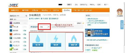 第三步:进入水电煤缴费的界面,选择你“所在的城市”,然后选择你要“缴费的项目”,本人以交电费费为例,水、煤气费的缴费方式完全一样。