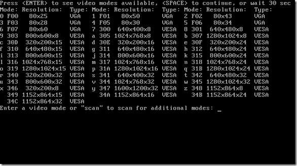 在kernel 后加上 vga=ask
