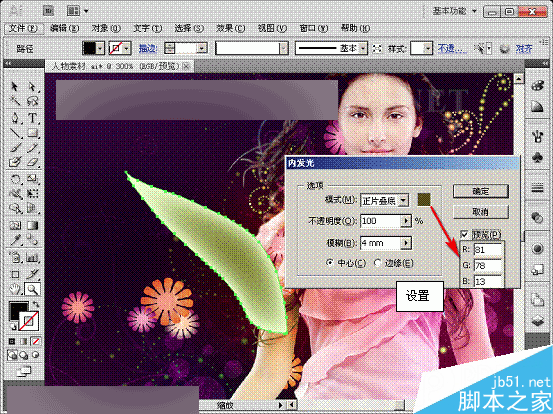 (8)将调整好的图像复制,调整其角度、位置和内发光参数设置。