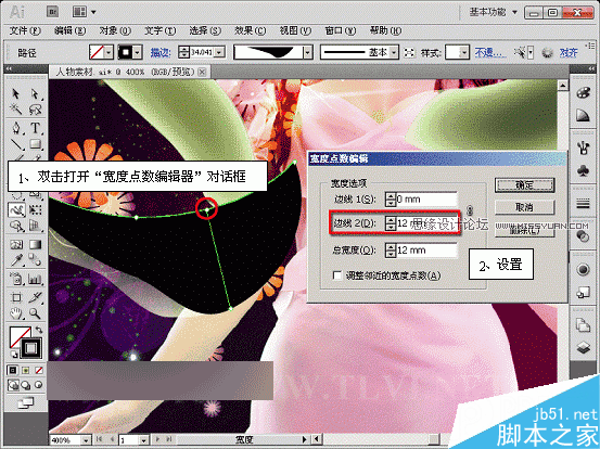(10)使用“宽度”工具,通过设置“宽度点数编辑”对话框参数,对图形进行编辑。