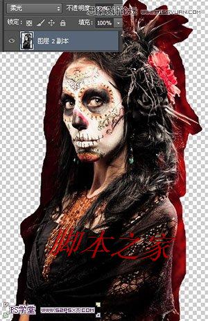 10.复制两个头颅图层,将模式改为柔光,不透明度30%11.新建图层,将眼睛中间涂抹黑色