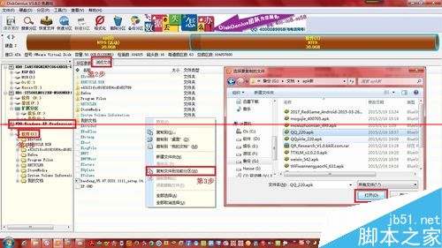 2、左边的VD0:Windows XP Profession就是打开的虚拟机硬盘,如图所示,第一步可以自己选择想复制到的分区,第三步过后找到自己想要复制的文件,点击打开
