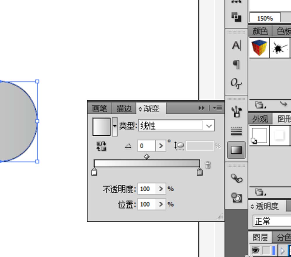 7、右边渐变窗口对渐变进行调整。