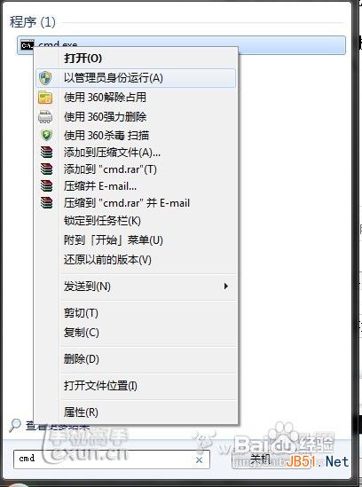 1、开启windows 7的隐藏功能:虚拟WiFi和SoftAP(即虚拟无线AP),就可以让电脑变成无线路由器,实现共享上网,节省网费和路由器购买费。戴妃亲测通过,比conncetify方便,稳定,网速好!以操作系统为win7的笔记本或装有无线网卡的台式机作为主机。主机设置如下: 1、以管理员身份运行命令提示符: “开始”---在搜索栏输入“cmd”----右键以“管理员身份运行”