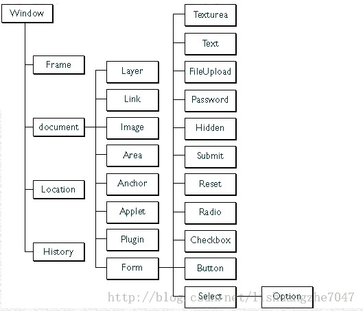 说到window对象,我们首先来看一下window中各对象间的关系。如下图: