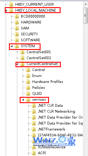2、然后依次展开定位到“HKEY_LOCAL_MACHINE/SYSTEM/CurrentControlSet/Services/Tcpip/Parameters”项;