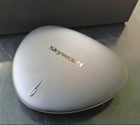 创维盒子Q+二代采用圆润饱满的三角形的造型,远看有点类似一个心型,在顶盖部分有着凹刻高光处理得创维LOGO,外观还是不错的。