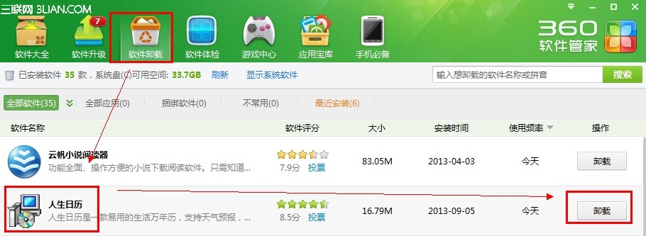 以上就是健康玫瑰最近收集整理的关于使用360软件管家来卸载人生日历的全部内容,更多相关使用360软件管家来卸载人生日历内容请搜索靠谱客的其他文章。