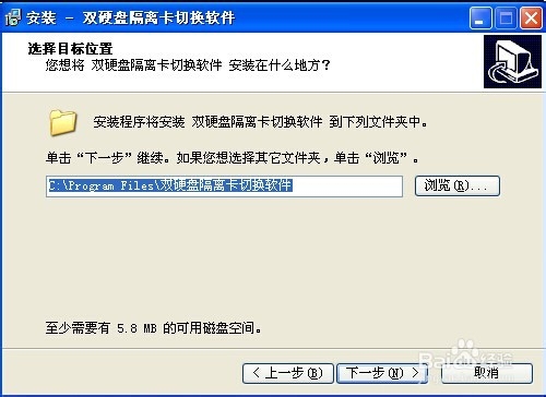 1.将安装【双硬盘隔离卡切换软件】到系统上,弹出对话框,按下一步。
