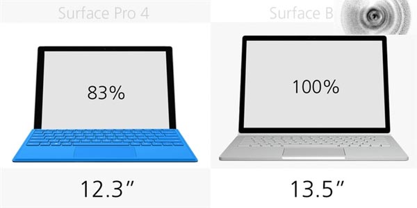 在厚度方面,Surface Pro 4的裸机厚度为8.5mm,在装备键盘保护套之后厚度分别为13.2mm(带指纹传感器的Type Cover)和13.4mm(标准SP4 Type Cover);而在Surface Book的厚度测量方面则根据折叠厚度,在13mm到22.8mm之间,在不接键盘的情况下屏幕厚度为7.7mm。