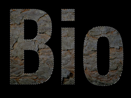 给背景添加一点细节,将字母的轮廓赋予树皮纹理并作为图层蒙版,取代原来的绿色渐变。