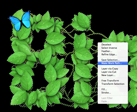 用一个简单的PS画笔和Wacom手写板在叶片之间画一些藤蔓形状,并延伸到字的轮廓之外。