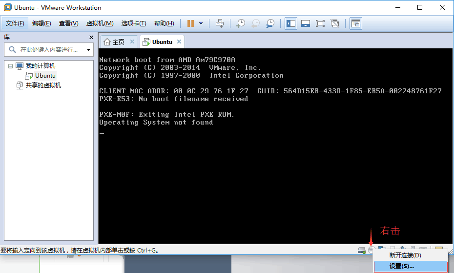 (操作系统未找到,此时右击右下角光盘形状的按钮,点击设置)