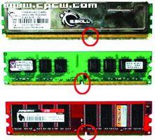 图1就是三代内存的全家照,从上到下分别是DDR3、DDR2、DDR。大家牢牢记住它们的样子,因为后面的内容会提到这幅图。