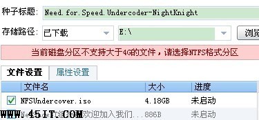 玩家经常在下载大型游戏时有时会提示,当前磁盘分区不支持大于4G的文件,请选择NTFS格式分区。如图: