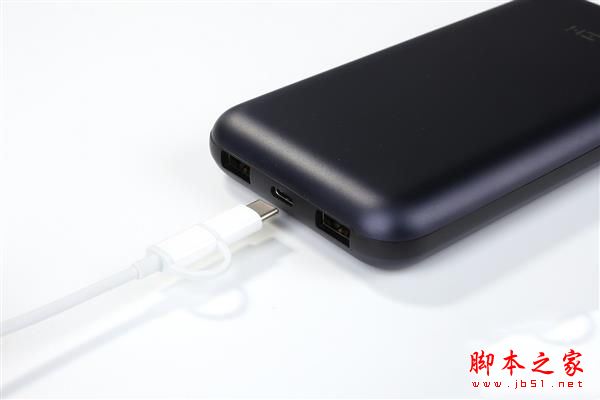 USB-C口还支持最高45W的输入(需要使用PD充电器,上述笔记本自带的适配器就可以),3.8个小时即可充满,用紫米自家的18W快充头则需要5.5小时充满。ZMI 10号移动电源还能当作USB HUB使用,支持C to C以及A to C两种模式,可以拓展出两个USB 2.0自供电数据接口,用于连接鼠标、U盘等外设。这一点对于相当一部分新式的搭载了Type-C接口的笔记本、平板而言十分实用。