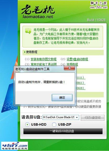 老毛桃WinPE的制作过程非常简单。需要提醒的是,U盘中的数据要备份好,因为制作WinPE需要格式化U盘。连接好U盘和电脑,启动老毛桃U盘启动盘制作工具,直接点击“一键制成USB启动盘”,软件会提示“此操作会格式化U盘”,点击“是”继续即可,接下来就是等上一小会儿直到提示“制作完毕”。