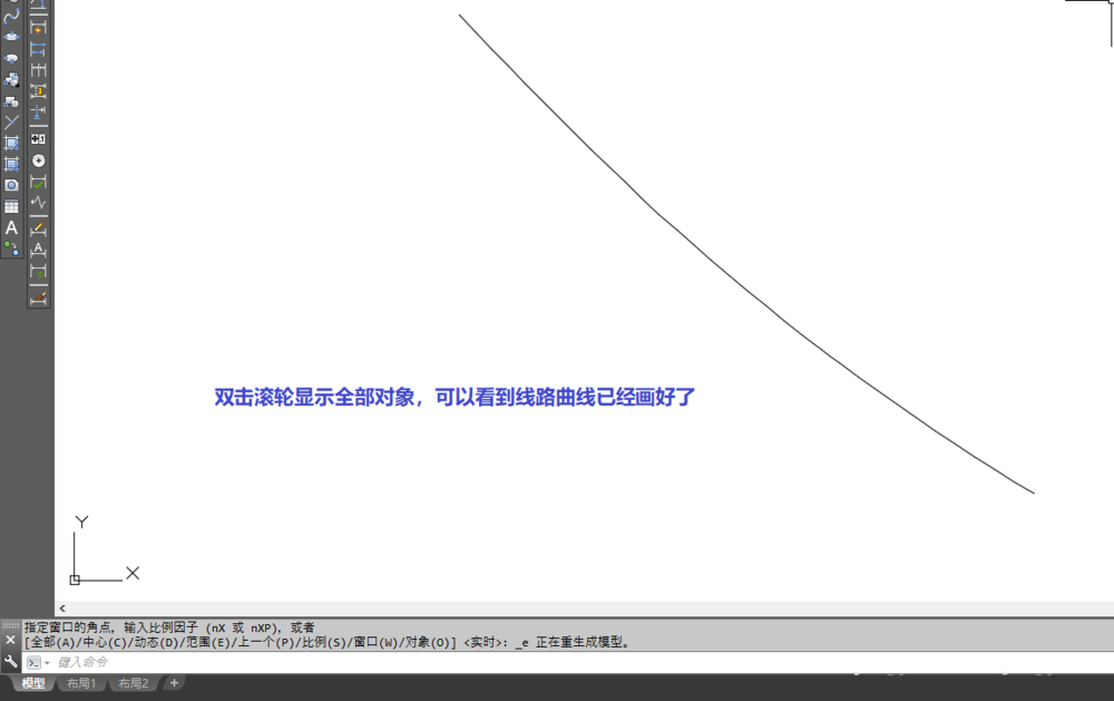 6、双击滚轮显示全部对象,可以看到曲线已经画好了