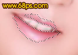 9、用钢笔勾出勾出嘴唇部分的路径,转为选区后按Ctrl + Alt + D 羽化1个像素,新建一个图层,填充颜色:#FF8EA6,把图层不透明度改为:30%,然后再加上高光,效果如图12。