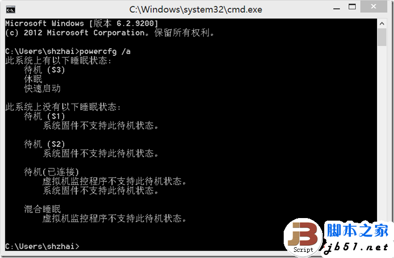 在命令行运行powercfg /a , 可以看到我的系统已经启用了快速启动功能。