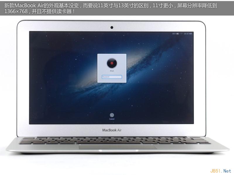 新款MacBook Air的外观基本没变,而要说11英寸与13英寸的区别,11寸更小,屏幕分辨率降低到1366×768,并且没有读卡器。