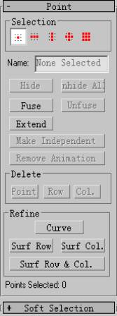 单击INURBS Creation Toolbar创建工具箱,按钮会弹出一个工具箱。这个工具箱可对点、曲线、曲面进行各种编辑,如图2-58所示。
