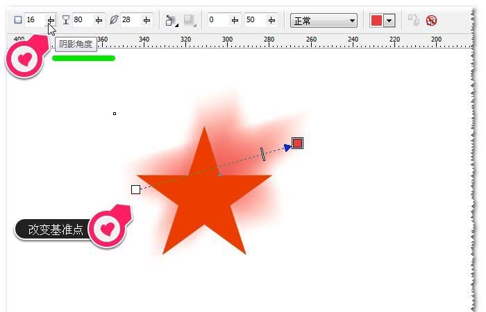1、阴影角度。其实改变基准点即可以(不让基准点在中心),调节阴影角度