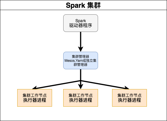 - 集群管理器(Mesos, Yarn或者standalone Mode)