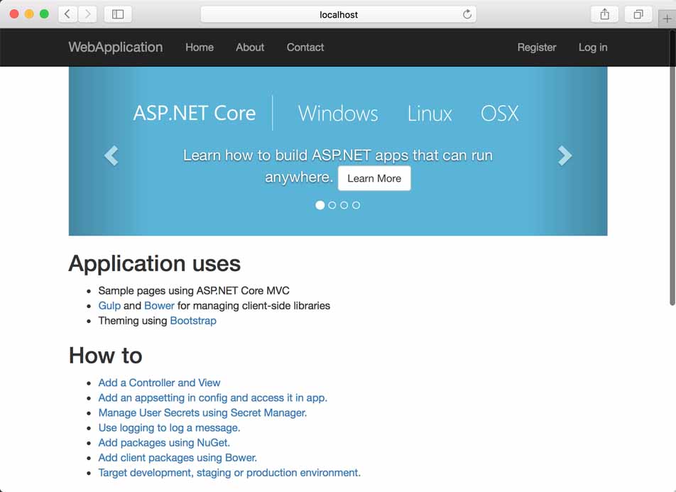 安装 dotnet 环境参见官方网站 https://www.microsoft.com/net/core#macos。