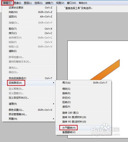 5、复制当前图层。将当前图层拖放到”新建图层“按钮上以产生当前图层的副本, 然后点击”编辑“→”变换路径“→”水平翻转“,再点击”工具栏“上的”路径选择工具“,最后移动图形到如图所示合适的位置。再将两个图层进行”栅格化“处理。