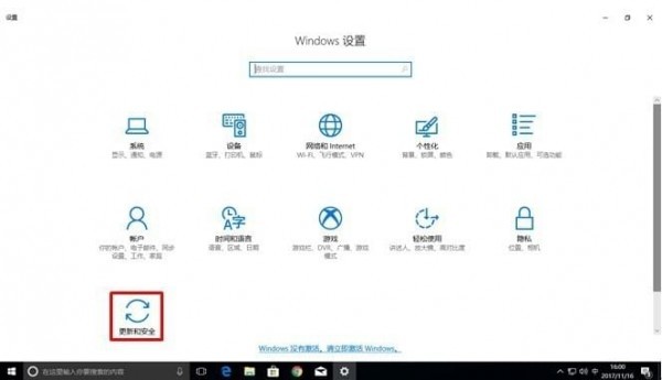 (2) 在[设置]界面,点击[更新和安全]。