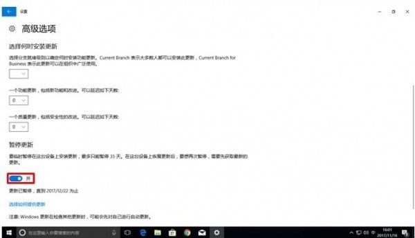 3)将暂停更新设置为[开]
