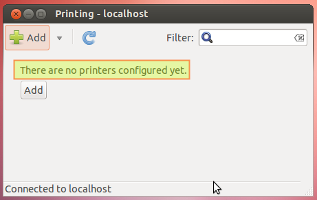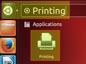在我们的Ubuntu 12.04的客户端,我们将打开"Printing"菜单(Dash -> Printing).你会注意到在其它发行版中,这个名字也许会有一点差别(例如会叫做"Printers" 或者 "Print & Fax"):