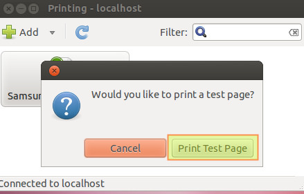 4) 我们接下来将被询问是否打印一张测试页。让我们点击"Print test page"吧: