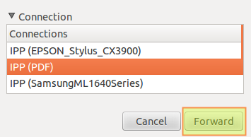 要安装Epson喷墨和PDF打印机,我们只需重复第1-5的步骤即可,并每一次选择左边的打印队列。例如,在下图中选择PDF打印机: