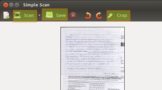 现在我们可以打开"Simple Scan"(或者其它扫描工具)并开始扫描文件。我们可以旋转,修剪,和保存生成的图片: