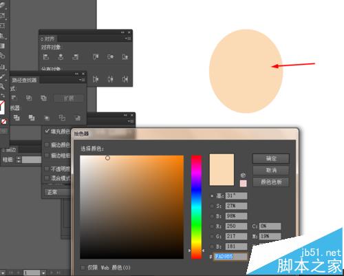 1、在Ai软件中,新建一个800*800的文档,选择椭圆工具,画一个椭圆图形,并填充颜色,如图所示