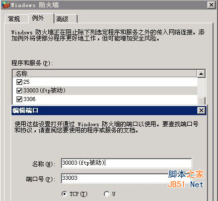 二、在防火墙里打开这个范围的端口就可以了。(注意,多个FTP用户同时登陆需要开几个端口,否则后来的用户,会无法登陆!如果自己的服务器打开1个端口即可)